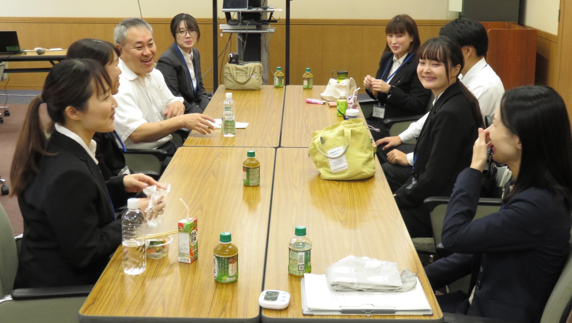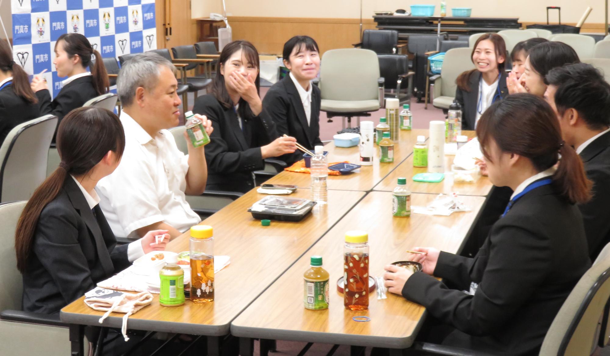 最初は緊張していた新規採用職員も子育てについてや、休日の過ごし方、門真市内のおいしいお店についてなどの話をするうちに、次第に笑顔もこぼれ、和やかな雰囲気に包まれた時間となりました。