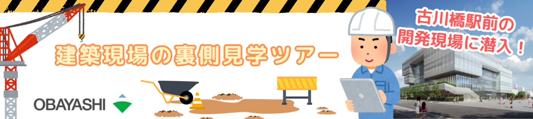 古川橋駅前で話題の建築現場の裏側見学ツアーです。普段は入れない施設の中で、工事現場の様子を見学します。高所作業車に乗ったり、完成間近の新しい設備の現場の様子を見学できます。今しか見れない未完成の建築現場に潜入しよう!
