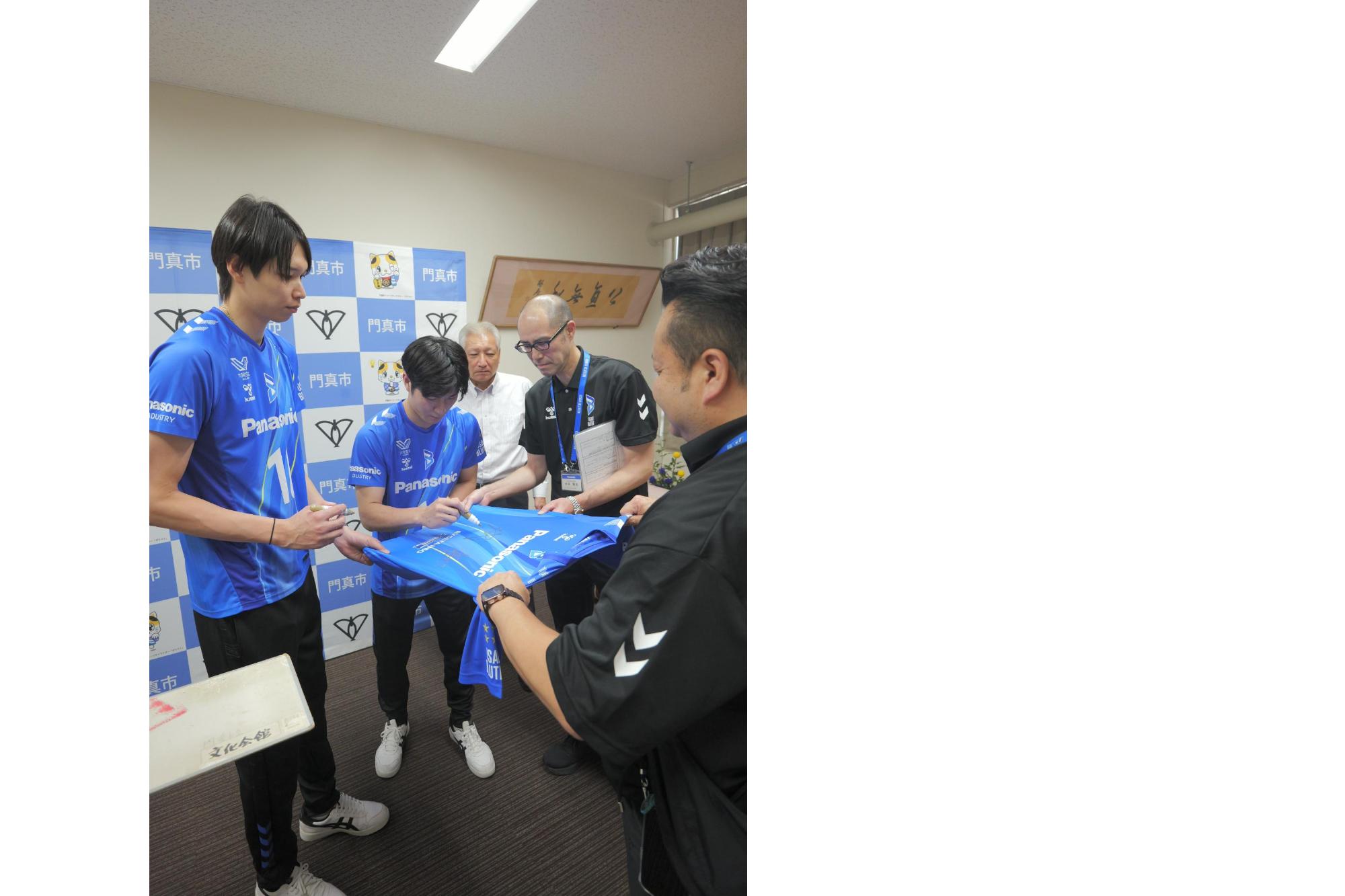 2025年10月9日(木曜日)に大阪ブルテオンの山内選手と池城選手が、門真市役所に来庁され、シーズン開幕にむけた抱負を語られました。