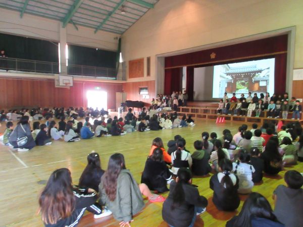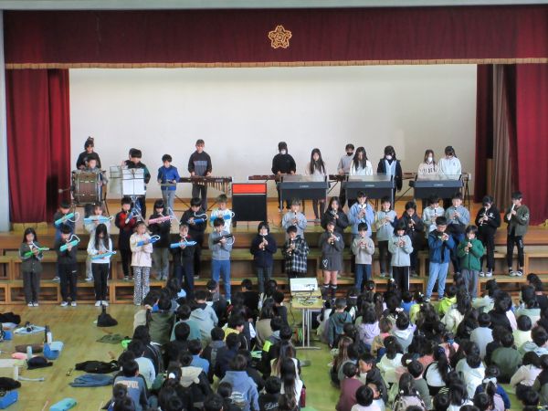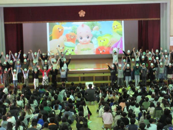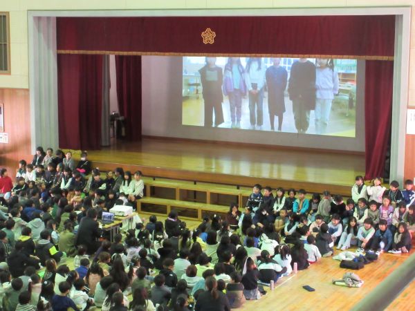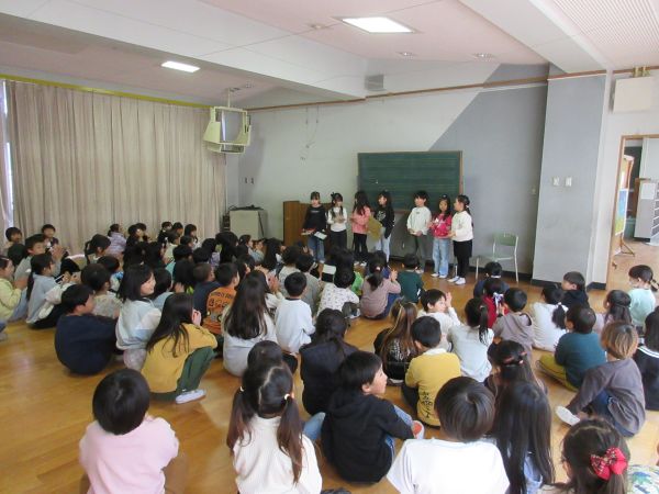 今日は式典で披露する学年発表を、1~4年生でお互い見合いっこしました。大勢の前で声を出すのは緊張しますよね。でも大丈夫。二島小学校のみんなが温かい眼差しで応援してくれますよ。自信をもって頑張ってくださいね!