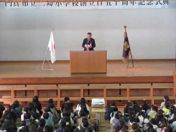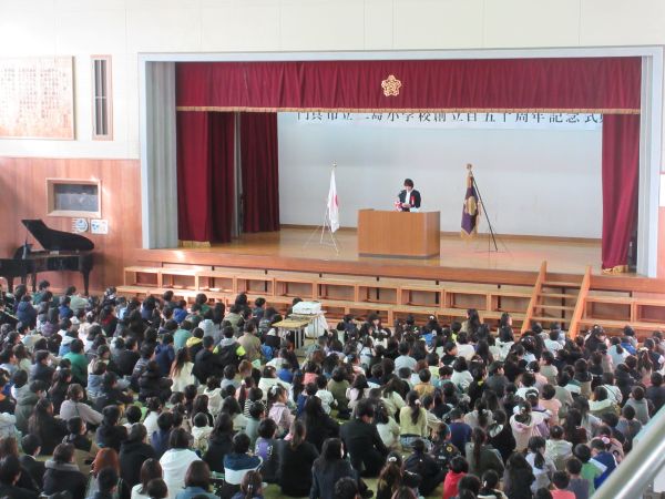 宮本市長と八木下教育長からは、温かいお祝いの言葉をいただきました。また、各学年の学習発表では、子どもたちの等身大の素敵な姿を見ていただくことができました。「二島小学校の未来は明るい!」そう強く感じた式典となりました。