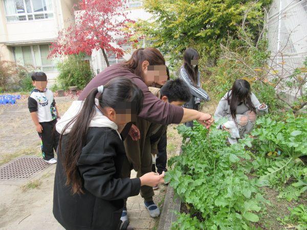 2学期に挑戦するのは新たな冬野菜。なかなかうまく行かず、苦労することが多いようです。そこで、どうしたらいいのかみんなで考え、意見を出しながら試行錯誤の繰り返し。担任の先生曰く、すでのたくさんの学びと様々なドラマがあるようです。