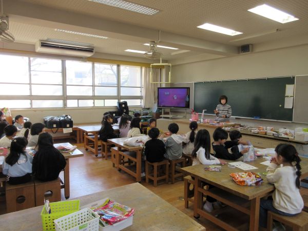 昨日、講師の方をお招きし、1年生と3年生の児童を対象にアップリサイクルの出前授業を実施していただきました。