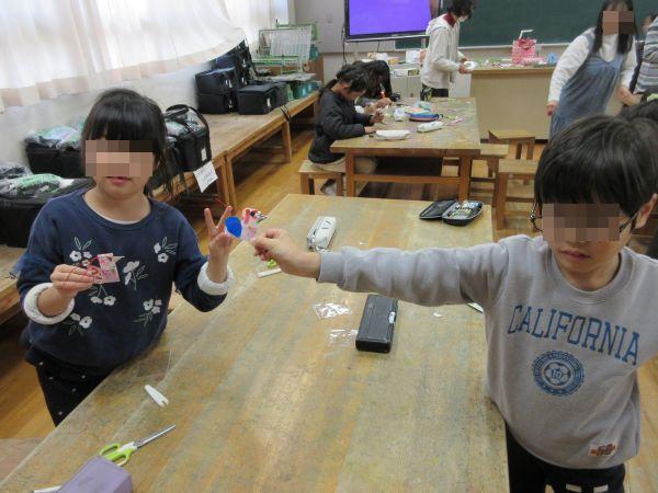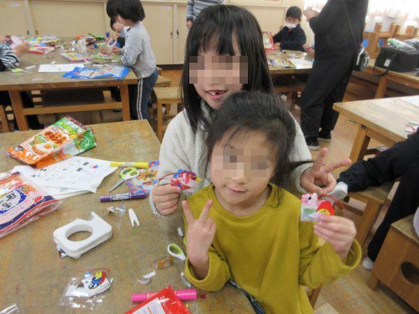 子どもたちは、それぞれがお家から持参したプラスチックの入れ物を、想像力を膨らませていろいろな物に変身させていました。この出前授業を契機に、リサイクルや環境問題に興味をもってくれたら嬉しいです。