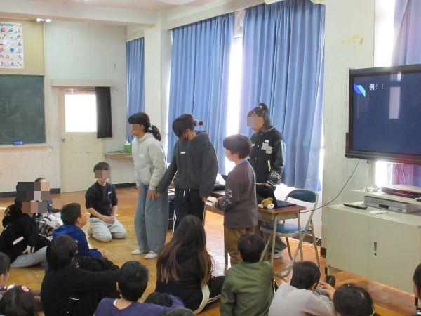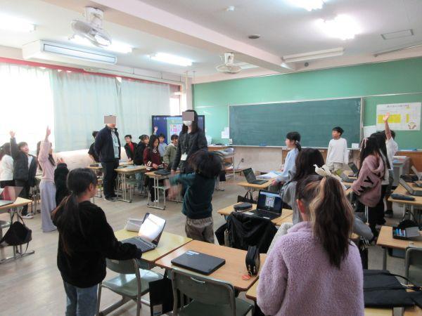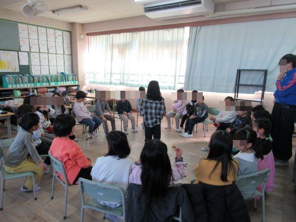 2学期は、児童会の企画運営により、きょうだい学年の異学年交流が盛んに盛んに行われています。今日は5年1組と3年1組の異学年交流の様子を参観させてもらいました。