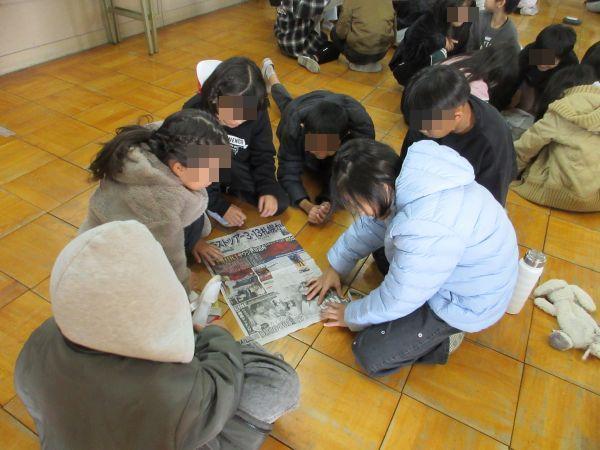 5年生の司会により、手遊びゲームとグループ対抗新聞紙切り競争を楽しんだ1時間。交流がスムーズに進むよう説明スライドを用意したり、みんなが参加できるようなゲームを考えたりと、5年生の担当児童の頑張りが光っていました。そして、他の5年生児童もその頑張りをしっかり支える高学年らしい動きが素敵でした。