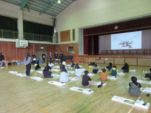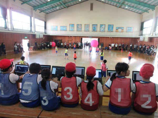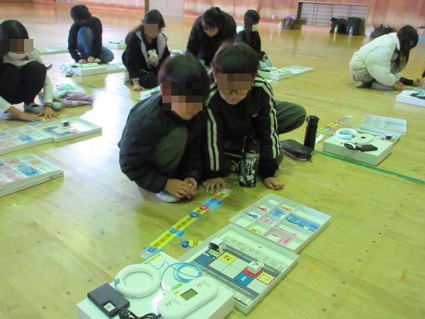 自動車を扱う企業の方に来ていただき、4年生を対象に広い体育館で「プログラミング教室」の出前授業を実施しました。