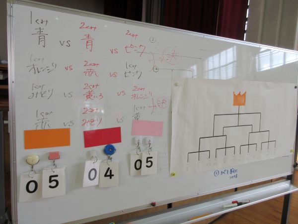 そして、3時間目には体育館から大歓声が聞こえてきました。2学期の体育の学習でキンボールに取り組んでいた4年生が、学年で「キンボール大会」を開いていました。勝っても負けても全力で競技に臨み、他のチームの試合も全力で応援する4年生。素敵でした。
