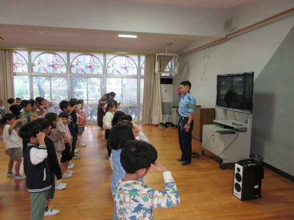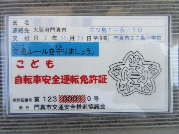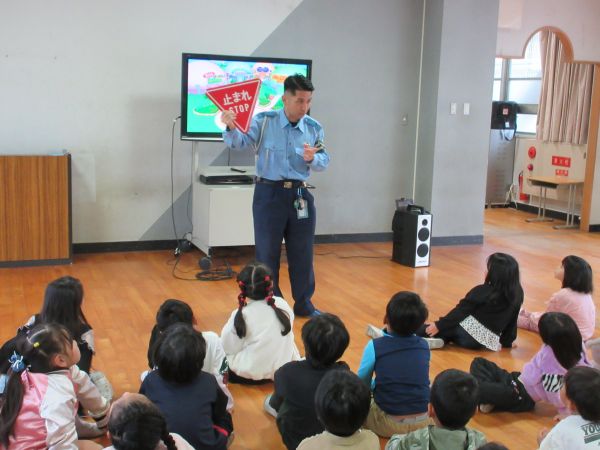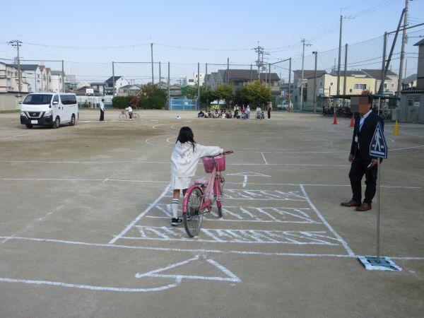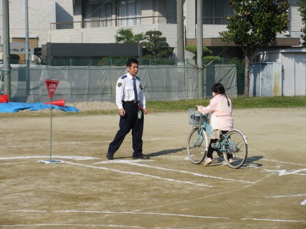 警察官の方から道路の危険性について、信号の意味について、道路における自転車の安全な運転の仕方についてなどの話を聞いた後、実際に自転車に乗り、教えられたことを校庭で実践してみました。最後には、こども自転車安全運転免許証を一人ひとりに交付してもらいました。
