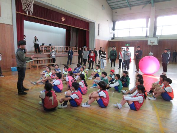 「一人ひとりが輝く授業」をテーマに、今回キンボールという新しいスポーツに挑戦した4年生です。攻めと守りが明確なキンボールは、ルールも簡易で、技能差や体格差に関わらず誰もが参加しやすいスポーツです。取組の当初は、大きいボールの扱いに苦戦していましたが、今ではボールを打ち出したりボールを落とさないようにしたりするもの、チームのメンバーで協力してとても上手になっています。何より、全員が活躍する喜びとチームプレーの楽しさを味わっている姿が、とってもよかったです。