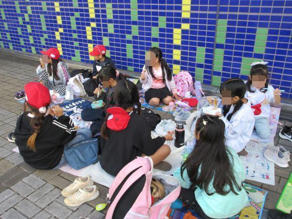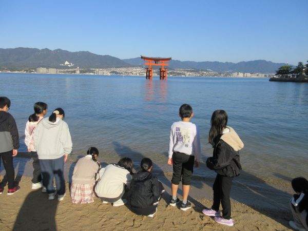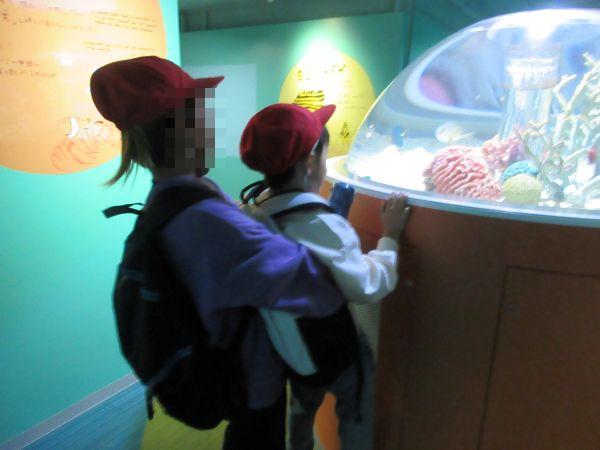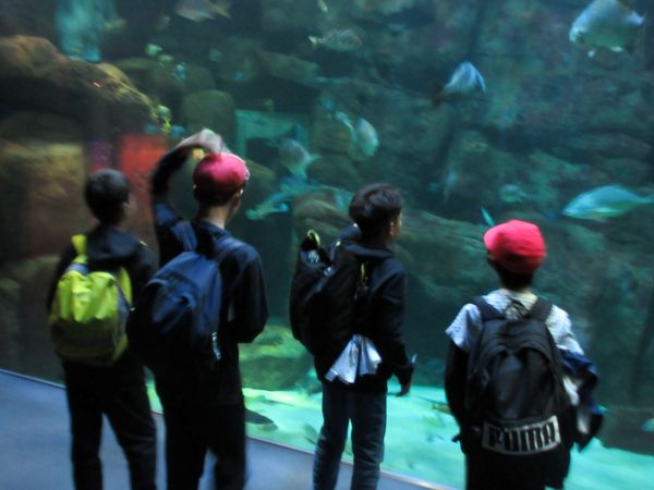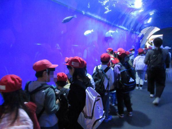 海遊館では、様々な海の生き物に目がキラキラ。特にジンベエザメを見つけたときは、喜びの声をあげていました。海遊館の見学、お弁当、行き帰りの電車など、すべて1・3年生が混ざった4~5人のグループ活動でしたが、3年生のやさしいことやさしいこと。常に1年生を気遣う言動が見られ、1年生もそんな3年生を頼りにしていました。