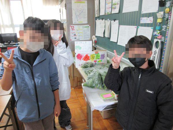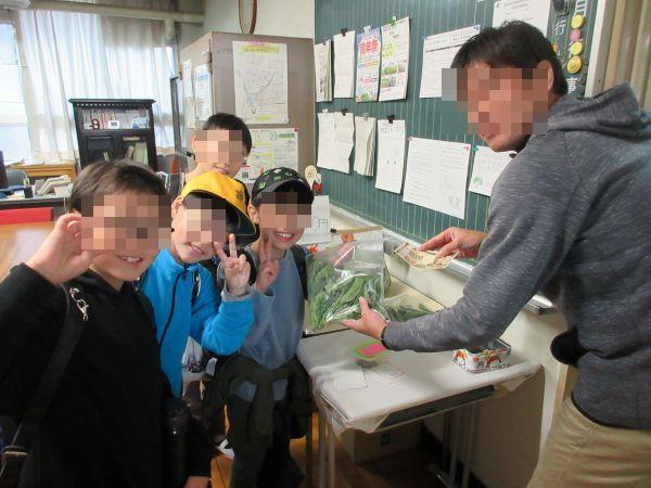 この日を楽しみにしていた先生方も、その出来の素晴らしさと量の多さに驚き!次々と売れていきます。また、売れ行きが気になるほうれん草チームの4年生が、休み時間ごとに校長室を訪れ、その数が減っていくのを喜んでいました。売り上げは、3学期の新たな野菜作りに使われるそうです。