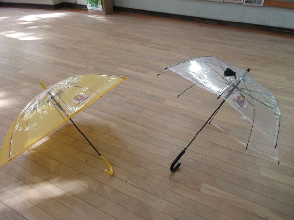 創立150周年記念事業の一つとして、大きさの違う二種類の貸出用傘を計60本寄贈していただきました。貸出用傘には目印として、二島小学校オリジナルキャラクター「ふたくま」のシールを貼られています。突然の天気変化で雨が降った時も、この貸出用傘があるので安心ですね。