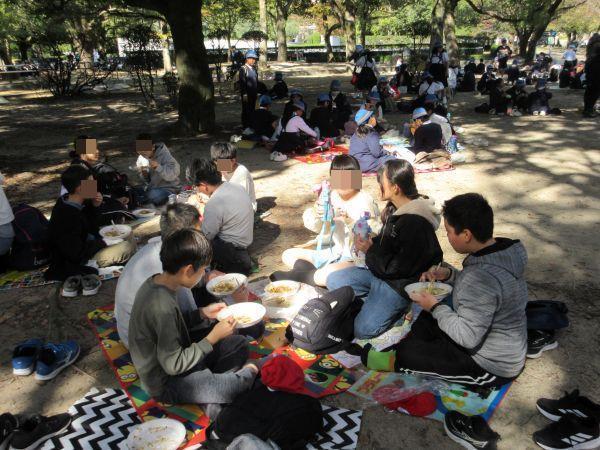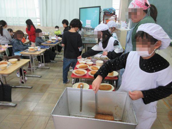 写真は1年生です。おいしそうにもりもり食べています。おかわりをする子もたくさんいました!