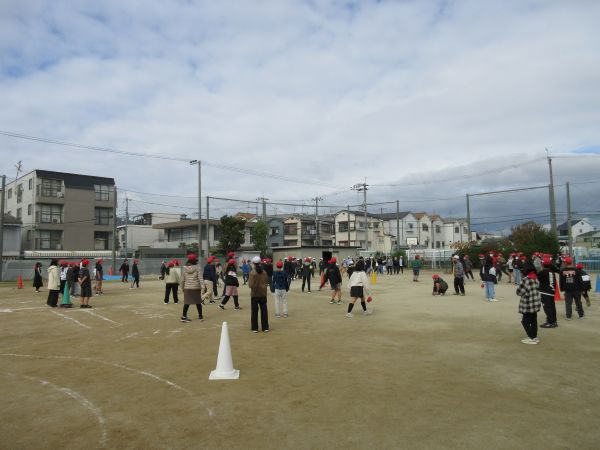 3・4年生と5・6年生は運動場でドッジボール、1・2年生は体育館でレンジでチン鬼ごっこです。今週がその実施週間。写真は昨日行われた5・6年生のドッジボールです。さすが高学年。スピード感いっぱいの迫力ある攻防が繰り広げられていました。この秋一番の冷え込みでしたが、身も心も温かくなる交流会となりました。