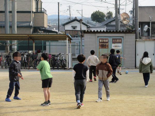 日が差している分、昨日より少し暖かさを感じます。20分休憩にはたくさんの子どもたちが元気に遊んでいました。