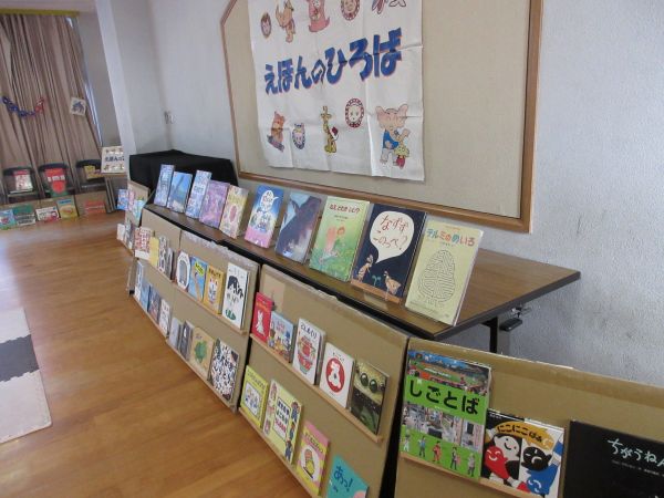 今年も門真市立図書館のご協力をいただき、1階多目的室がおしゃれなミニ図書館に大変身!今日から3日間の日程で300冊ほどの絵本や図鑑が並んだ広場がスタートしました。