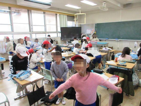 子どもたちを門で出迎えた後すぐに、1年生の教室をのぞいてみました。朝の準備が終わりランドセルも片づけられ、体育の授業に備えて体操服にも着替えられていました。時間を守って行動できる1年生です。素晴らしい!