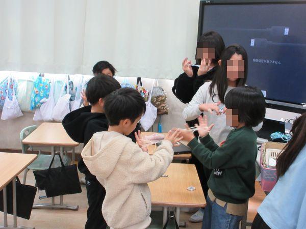すべての学年との交流活動を子ども主体で進めている5年生。この日は20分休憩の1年生の教室を訪問。あやとり、こま回し、折り紙など、1年生が生活科の学習で取り組んでいる昔遊びを一緒に楽しみました。ここはさすがの5年生。何をやっても上手な5年生ですが、1年生のペースに合わせる優しさが随所に見られ、とても微笑ましかったです。