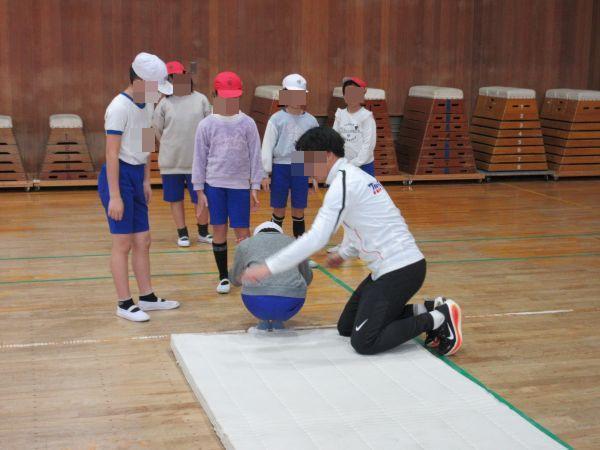 4年生はマット運動。今日は器械運動専門のゲストティーチャーをお招きしての特別授業。伸膝後転と側方倒立回転の練習でした。上手になるコツを教えていただいたおかげで、感覚を掴んだ子どもが多かったです。