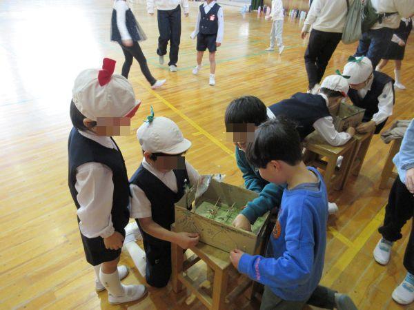 4月から二島小学校に入学予定の園児もいました。小学校生活に対するワクワク感が増すような交流会になったと思います。また、本校1年生にとっても、生活科の発展的な学習活動と共に、年下と接するよい機会となりました。