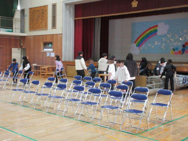 明日の卒業式にむけて、5年生と教職員で式場等の準備を行いました。椅子運びに掃除にと、よく働く5年生。次は自分たちが二島小学校を引っ張っていくぞという決意を感じます。