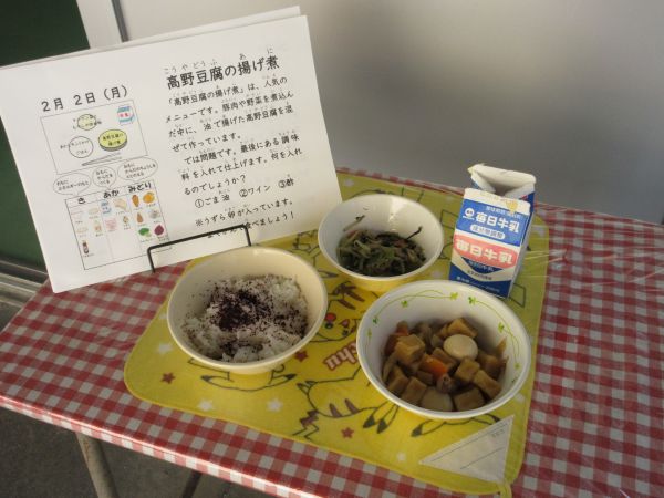 高野豆腐の揚げ煮は、本校教職員の一人が一番好きな献立に挙げる一品です。