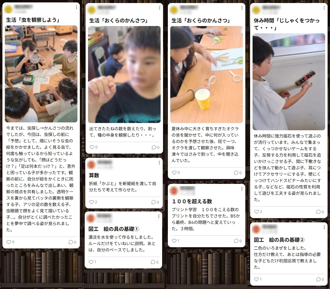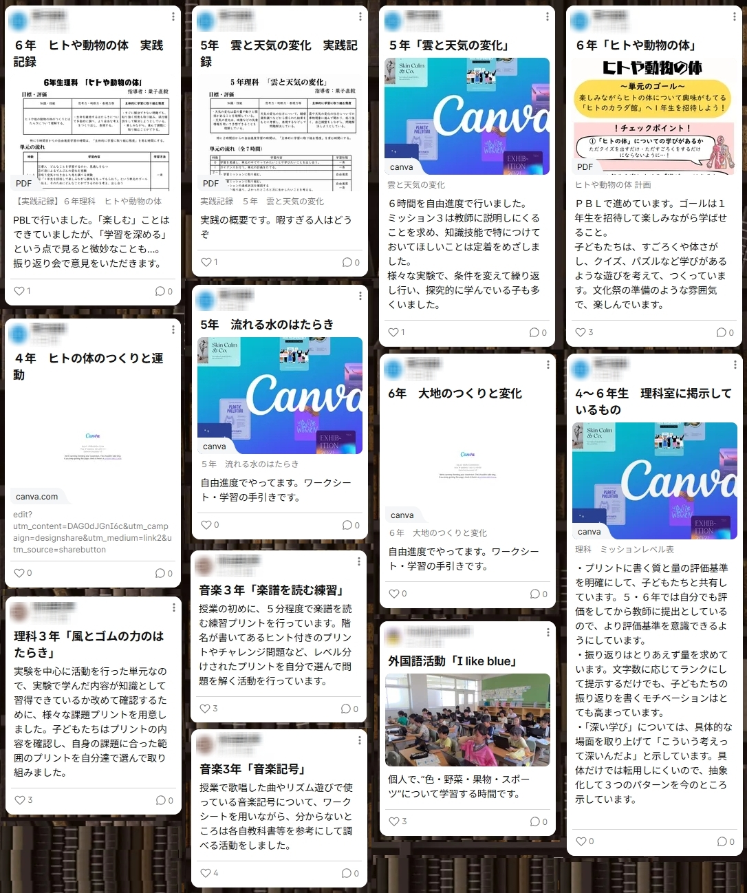 日常的な授業実践や児童の活動の様子を校内ネットワークのクラウド上へアップロードし、すべての教職員で共有をしています。他の先生の取り組みを自らの授業づくりに生かすことや、他学年の児童の様子を知ることができます。