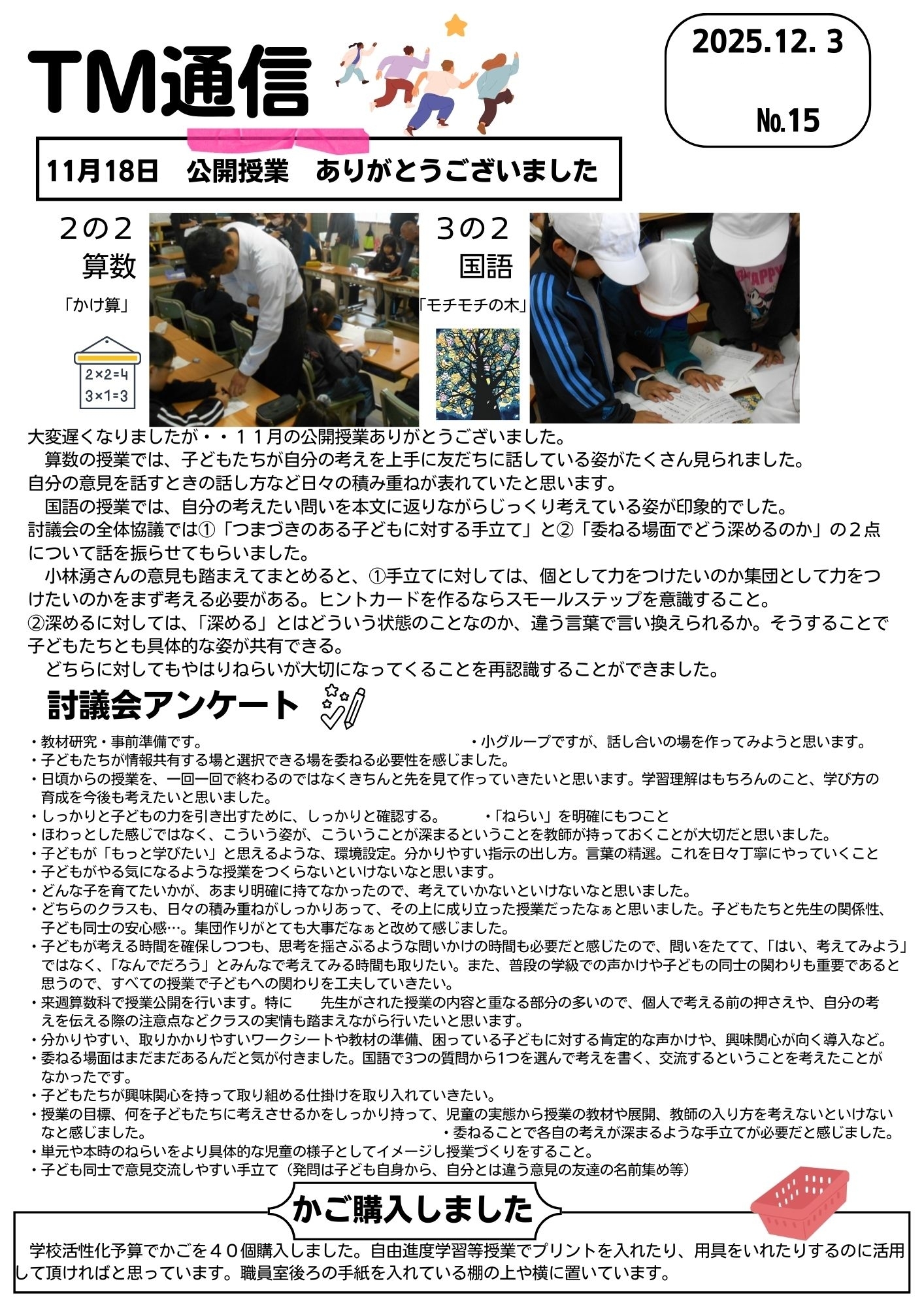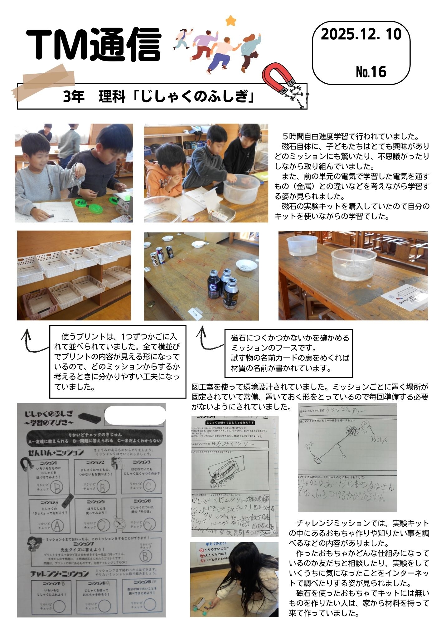 TM通信 更新日:2025年12月10日 校内の取り組みや他校の実践などを発信しています。 この記事に関するお問い合わせ先 門真市立速見小学校〒571-0039 大阪府門真市速見町4-1電話:06-6909-6500