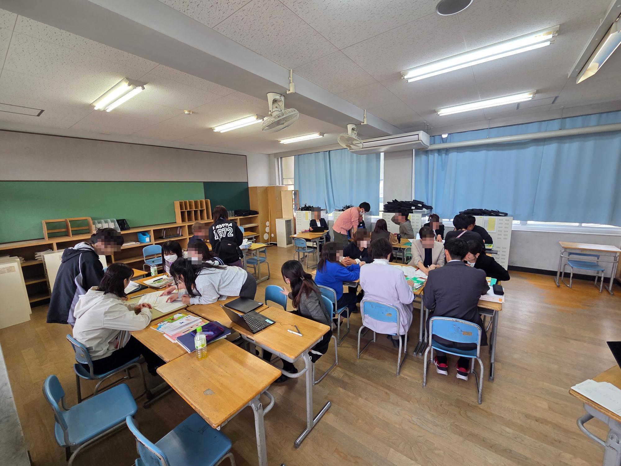 昨年度の各学年の年間指導計画を参考に、教科書を持ち寄り、今年度の計画を考えました。子どもたちに効果的に力を育むためには、どのように教科横断的にカリキュラムを組み立てるのがよいか、チームの先生で検討しました。全体で考える時間は3回目(サキドリ事業を活用した第1回目の教職員研修です)、今日が最後。後は、より具体的な部分をそれぞれのチームで考えます。4月13日~4月17日で年間計画を組み立てます。