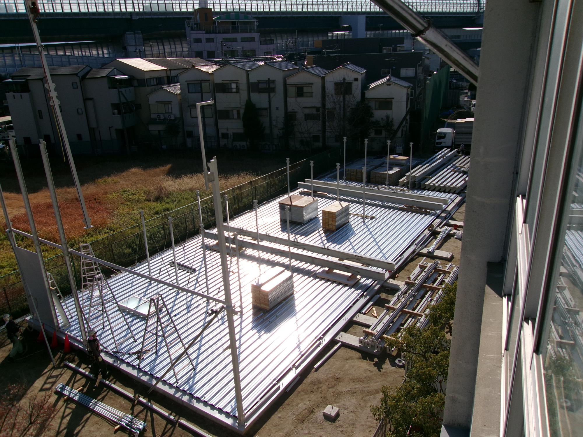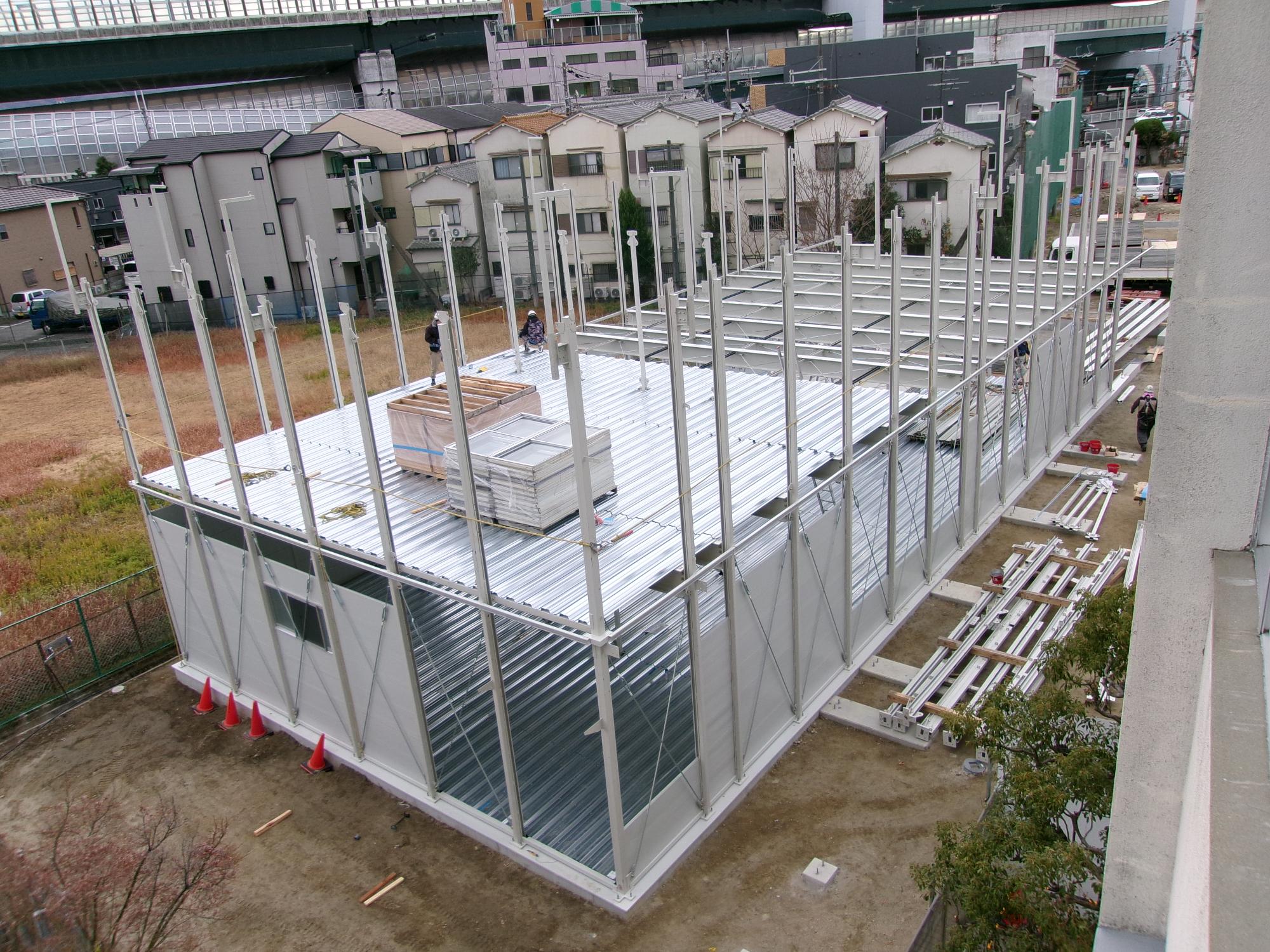 プレハブ校舎がほぼ完成したようです。