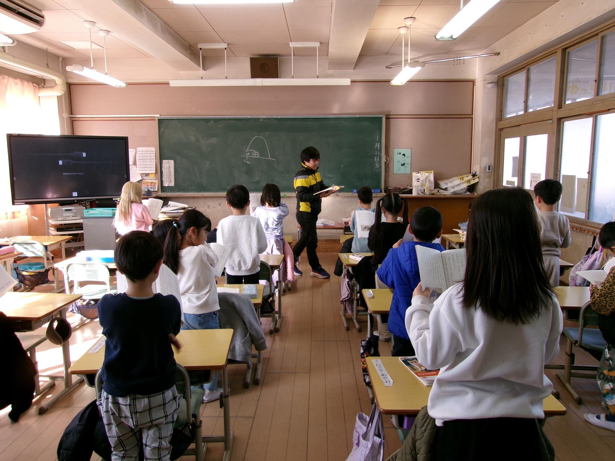 2年生「風のゆうびんやさん」お話をたしかめながら音読します。