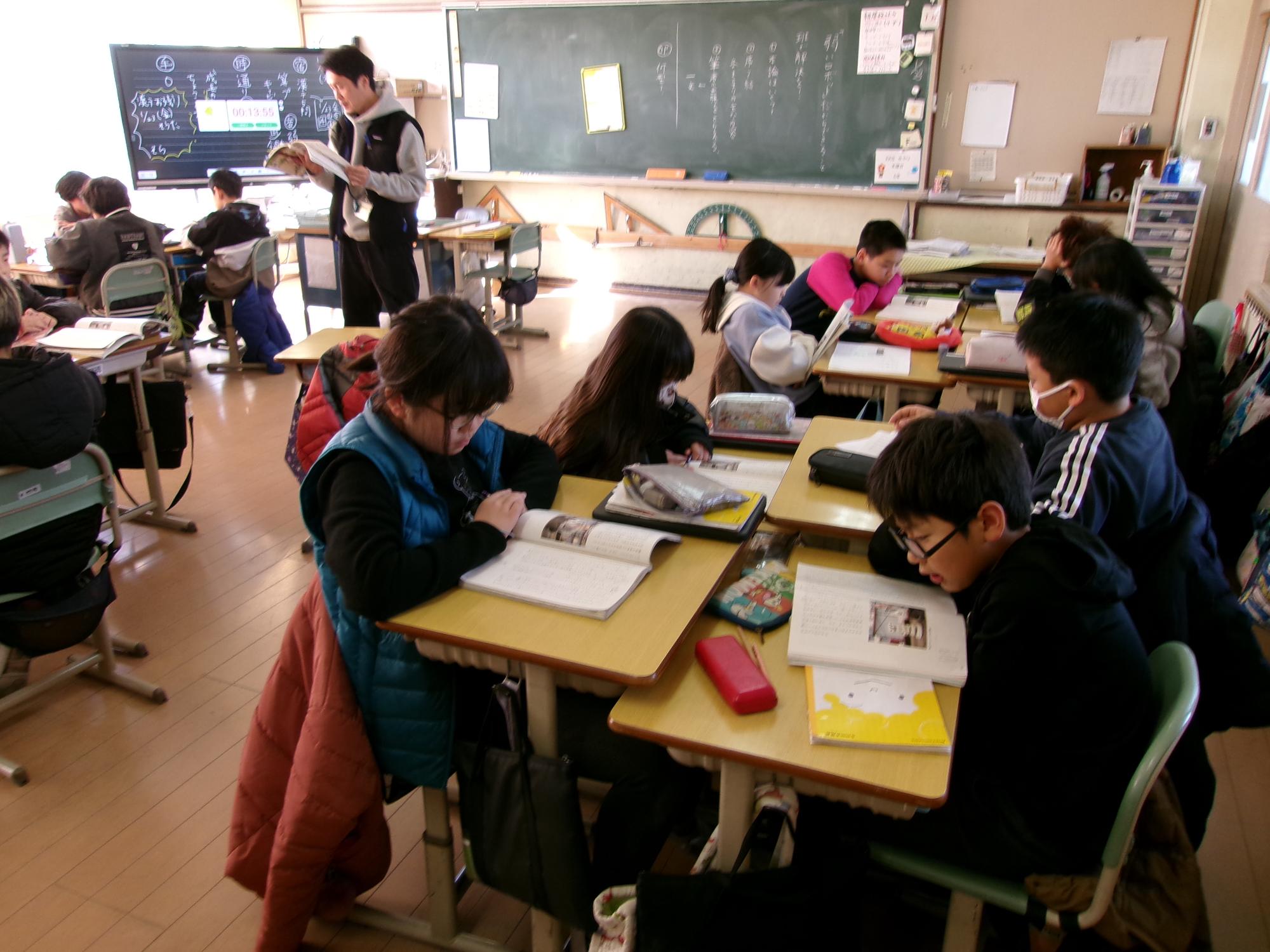 早く終わっている子は、本を読んで待っています。
