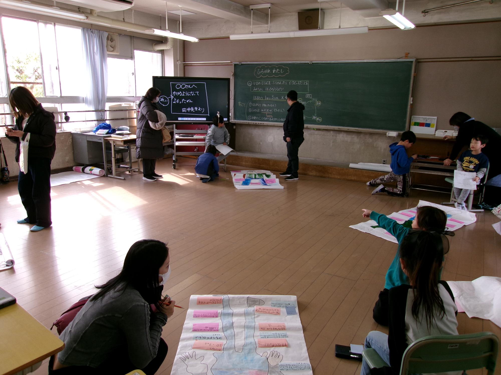 参観で、おうちの人に発表します。