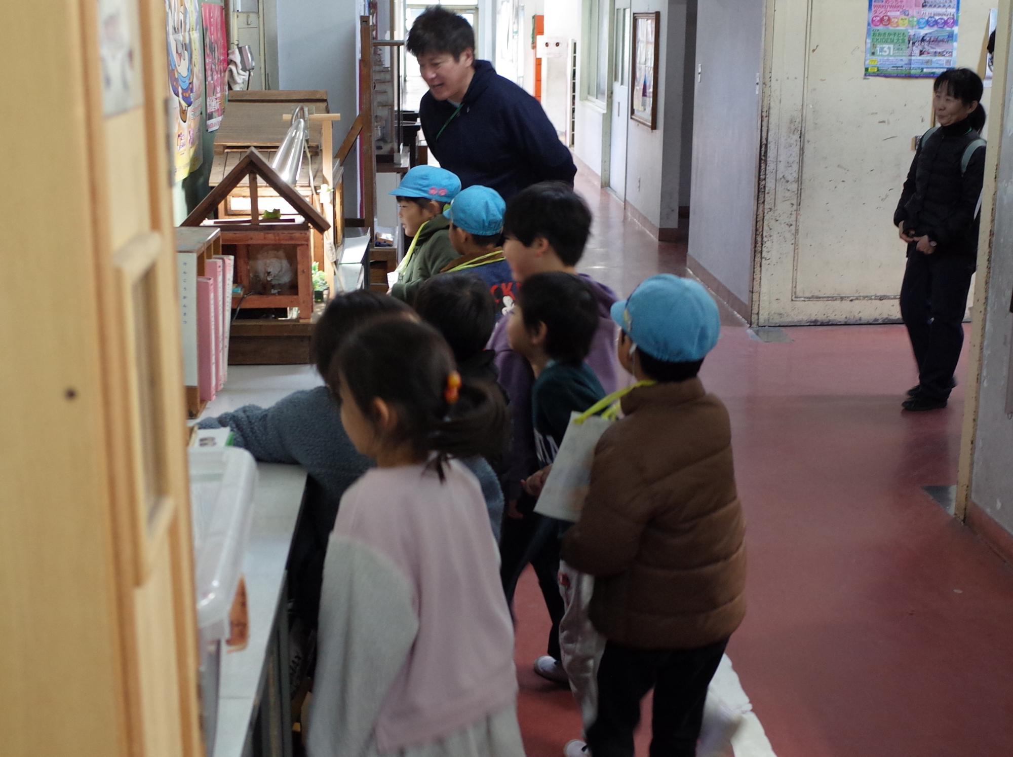 先日、北巣本保育園の子ども達に学校案内をしました。