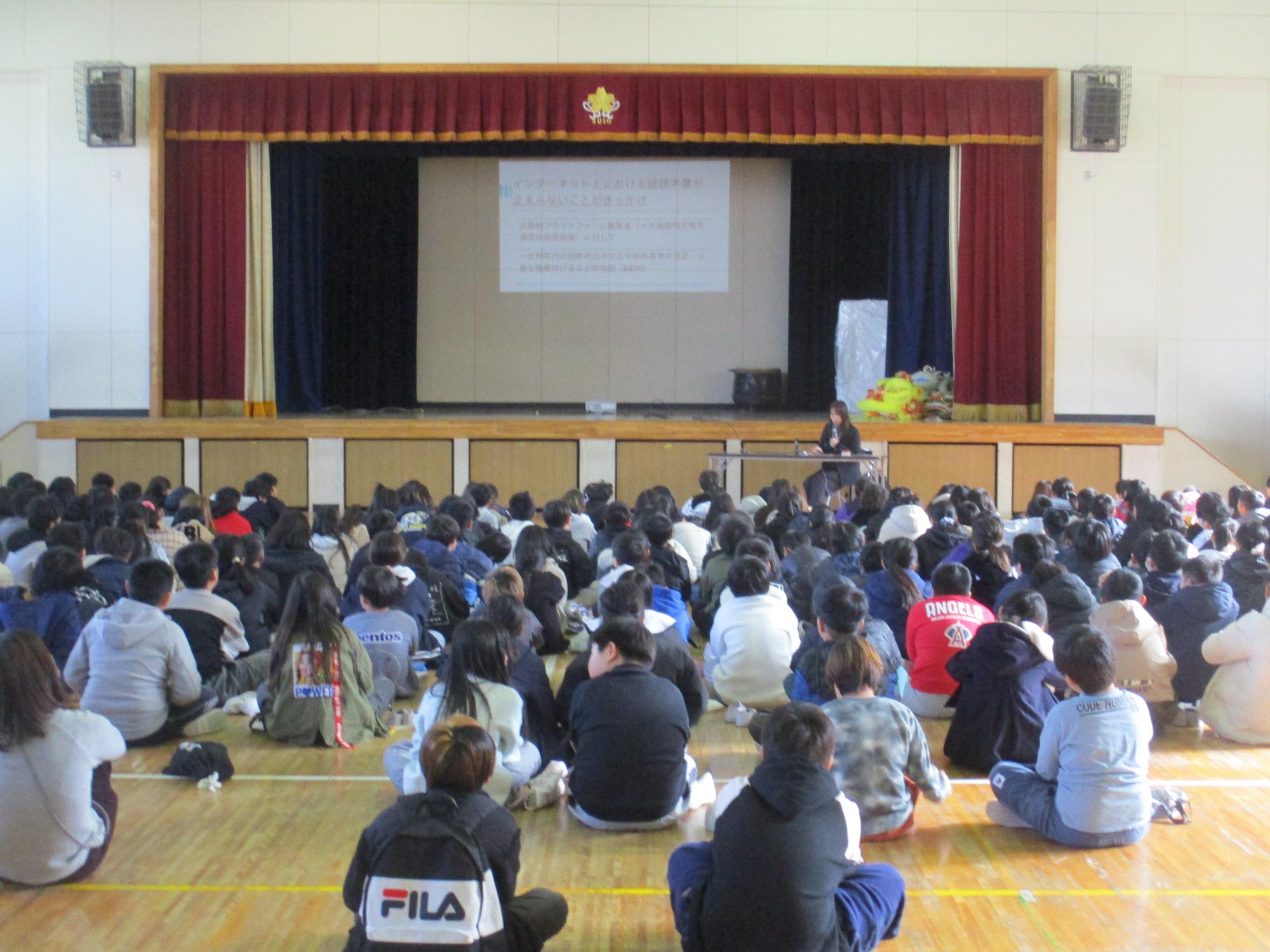 12月10日(火曜日)の三時間目、SNSの危険性について出前授業を行いました。今回のお話はNIT情報技術推進ネットワーク株式会社の筒崎眞美さんにお願いしました。