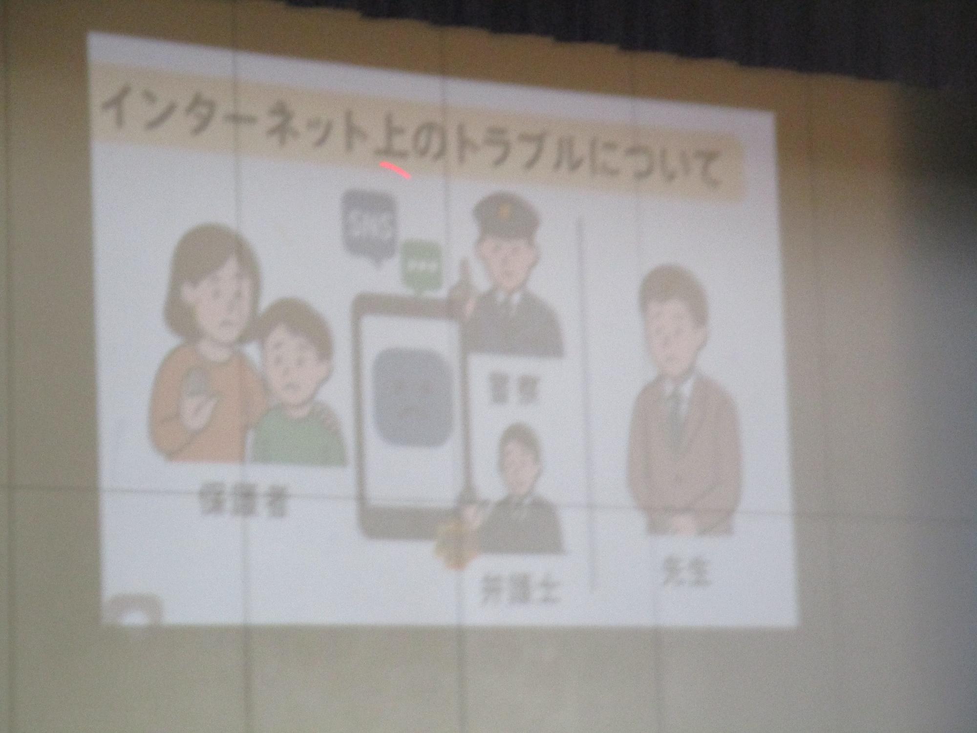 毎年行っているSNSに関する出前授業。それでもトラブルは後を絶ちません。約一時間を通して普段使っているアプリやゲームの危険性、特にSNSに関するトラブルを具体例も示しながら、子どもたちが聞きやすい、親しみのある口調と気持ちのいい軽快なテンポでお話しいただきました。話の中で「エー」や「ウソ―」といった子どもたちの感嘆の声が何度も聞かれましたが、本当に起こった具体的事例には黙り込む場面もありました。子どもたちは実際に「あかんこと」「こわいこと」という知識はあっても、自らが実体験していないことでなかなか理解できないようにも見えます。