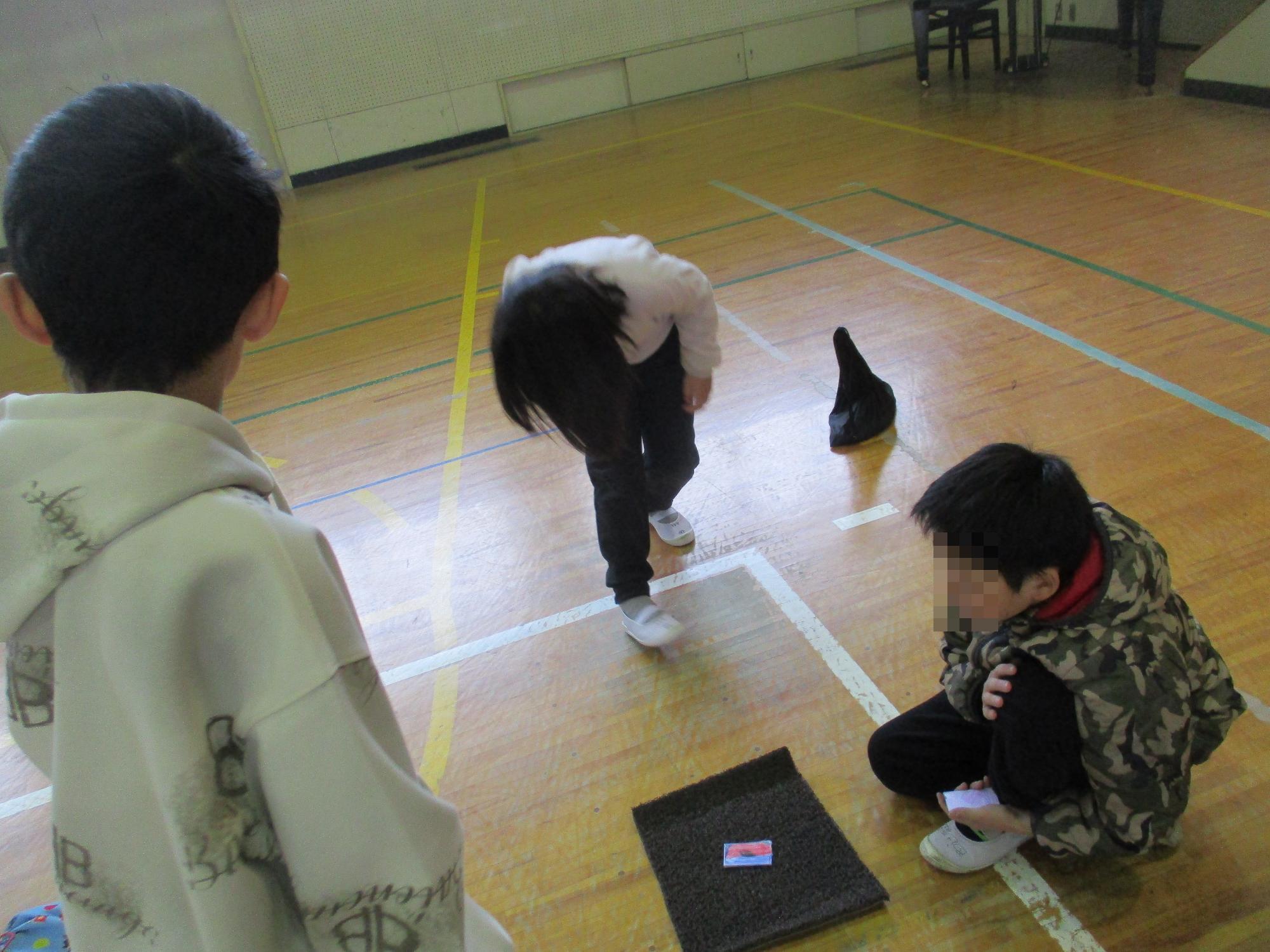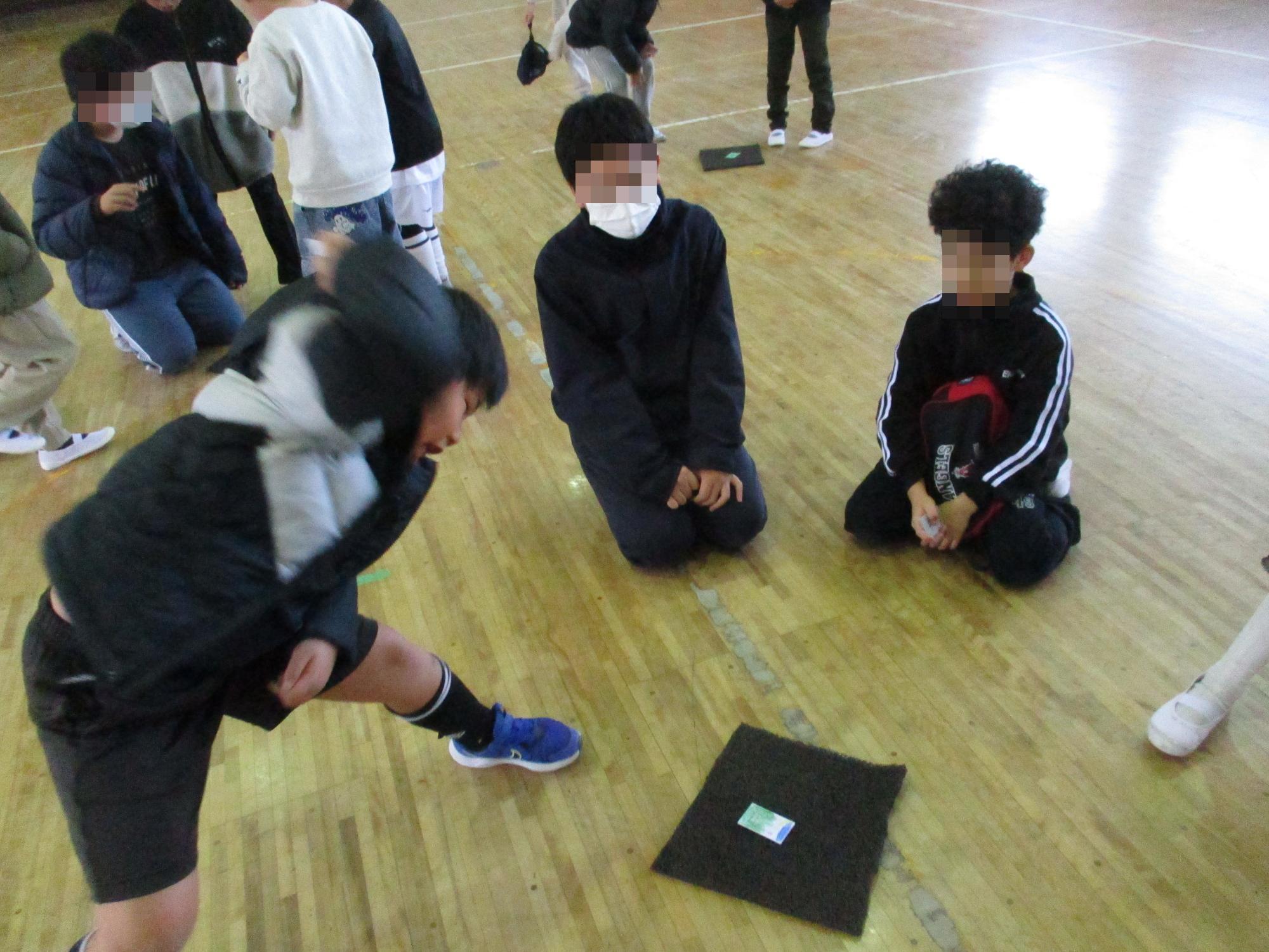 子どもたちは最初はうまくいかなかった子も、だんだん上手になり「パチン」といい音を出していました。低学年が高学年に勝つような場面もたくさん見られるかもしれません。運動操作の上達とともに、児童の交流にも活用できる遊びとなりました。
