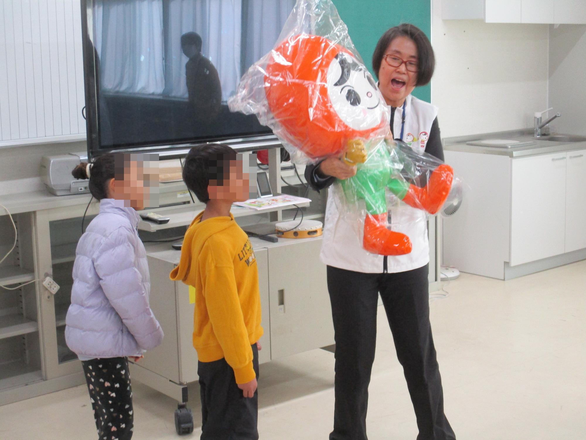 人権イメージキャラクター「まもるくん」です。一年生に手渡されました。
