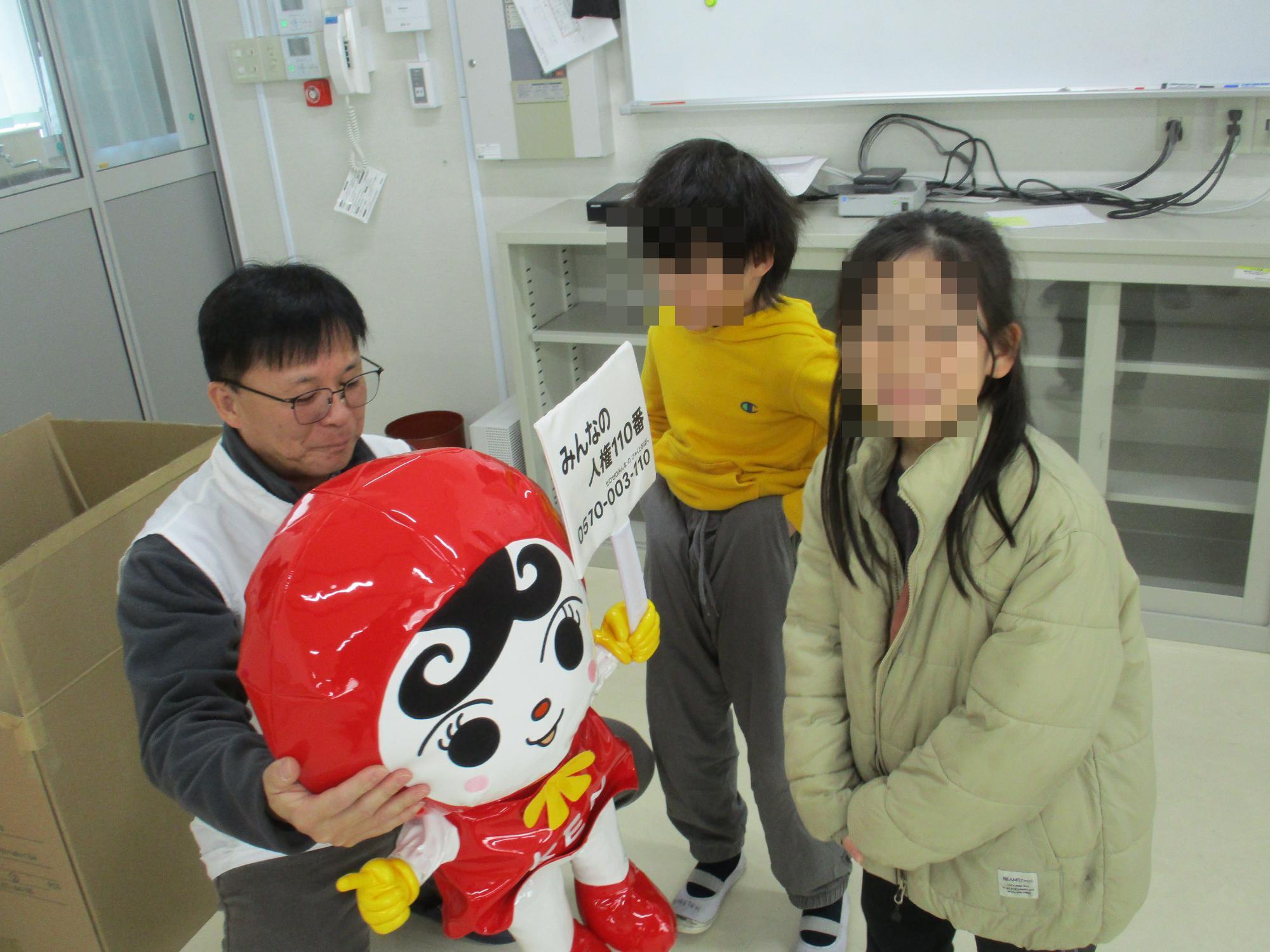 最後には人権イメージキャラクターのまもる君とあゆみちゃんのぬいぐるみをプレゼントしていただきました。今後もあらゆる場面で人権課題に向き合うことがあると思います。そんな課題点を見抜くアンテナをしっかりと張れるよう、それぞれの人権感覚を高める取組を進めていきます。