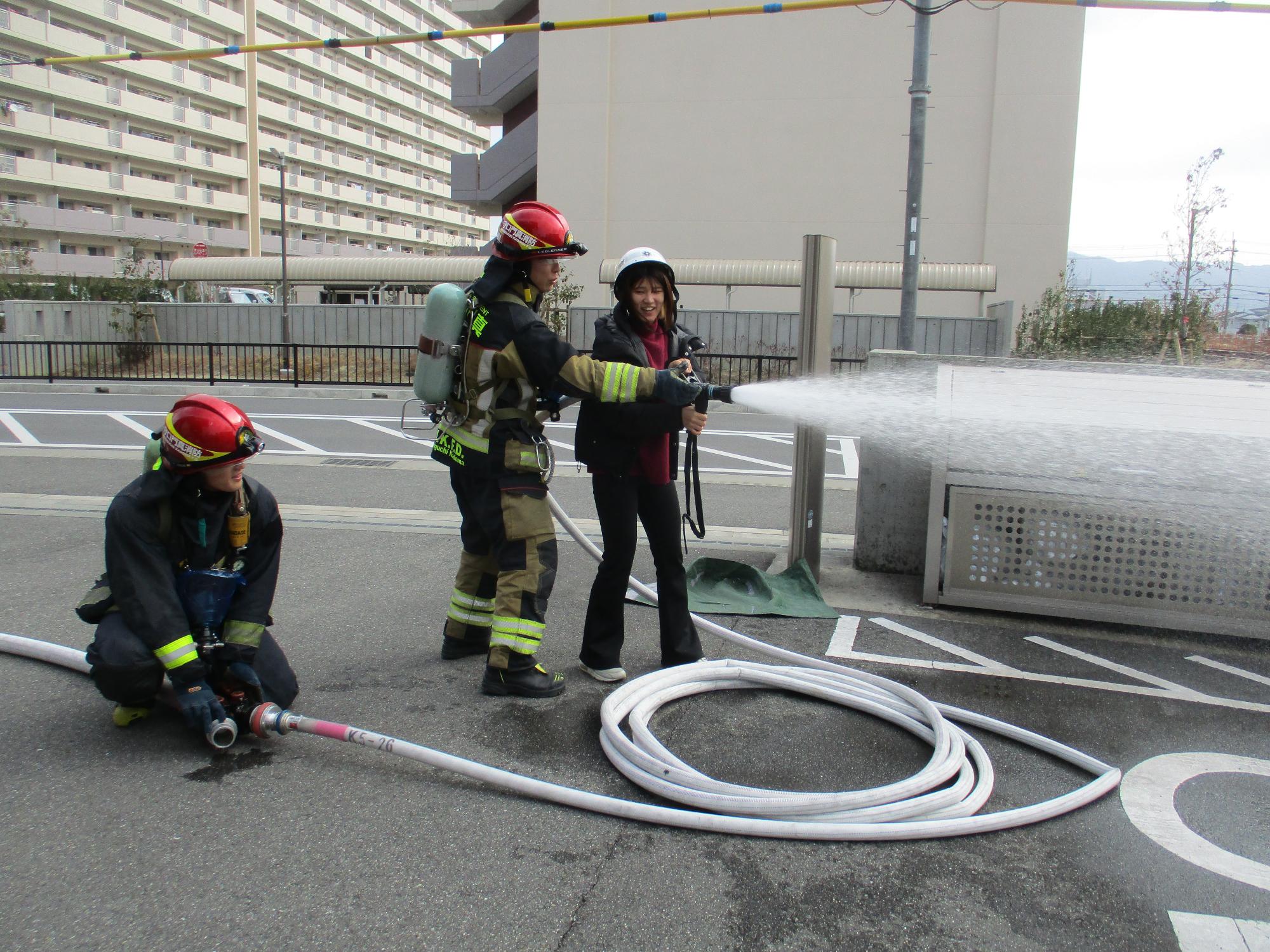 今回は消防車両の見学のみならず、放水体験までさせていただきました。基本先生方が体験する姿を子どもたちが見るような形となりましたが、それでも非常に貴重な見学となりました。