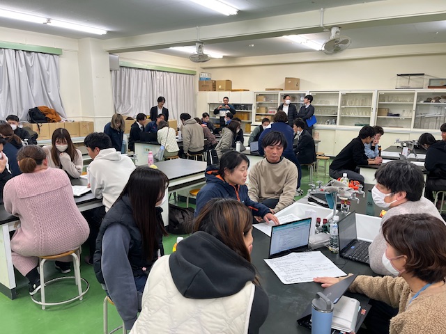 合同職員研修。学力向上からめざす子どもの姿まで小中一緒に話をしました。