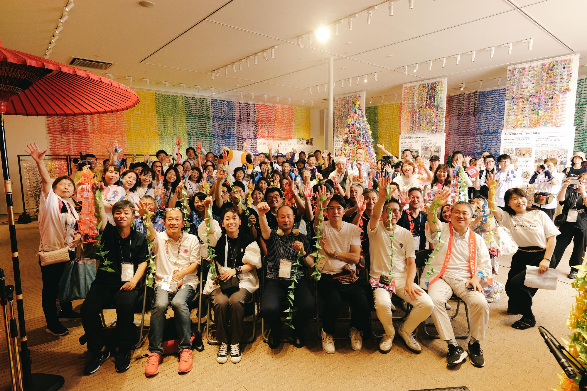 折り鶴の展示や交流を通じて、人と人が立場を超えて笑顔でつながることで「いのち輝く未来社会のデザイン」を発信