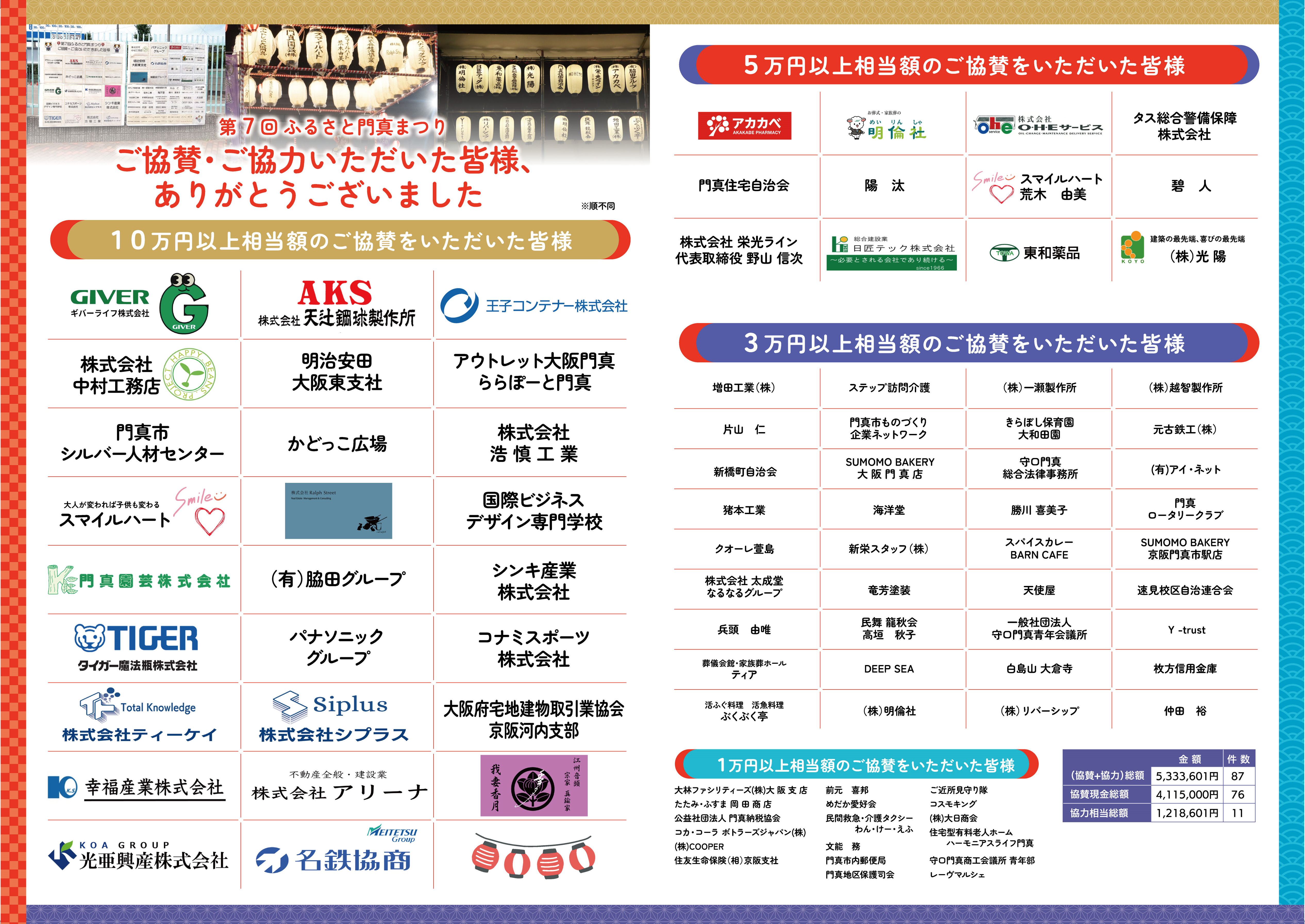 また、ご協賛・ご協力いただきました企業、団体、個人のみなさま、誠にありがとうございました。
