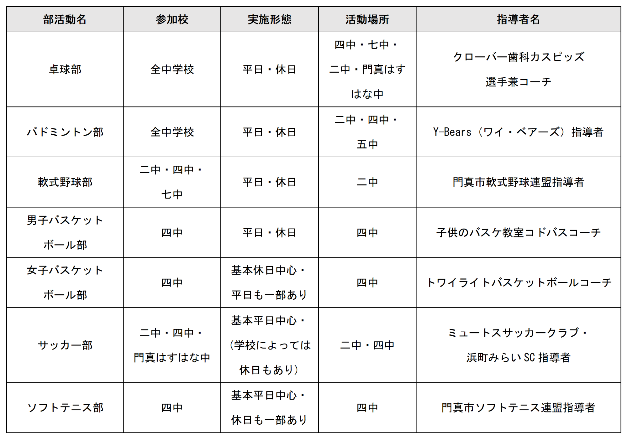 門真市立中学校部活動地域移行事業