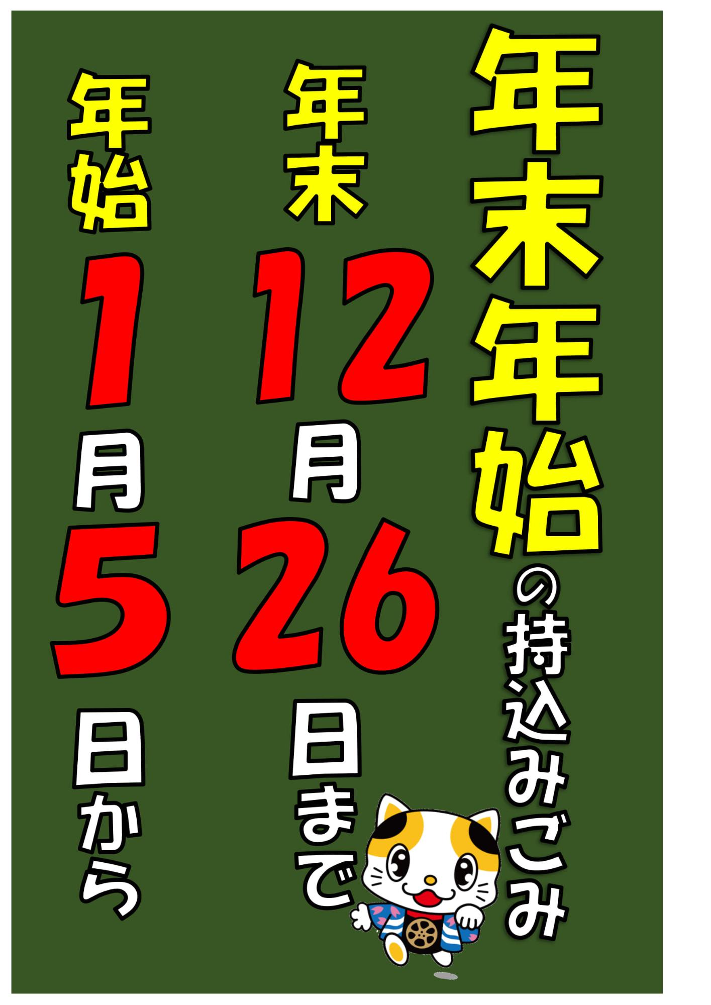 年末は、令和7(2025)年12月26日(金曜日)まで