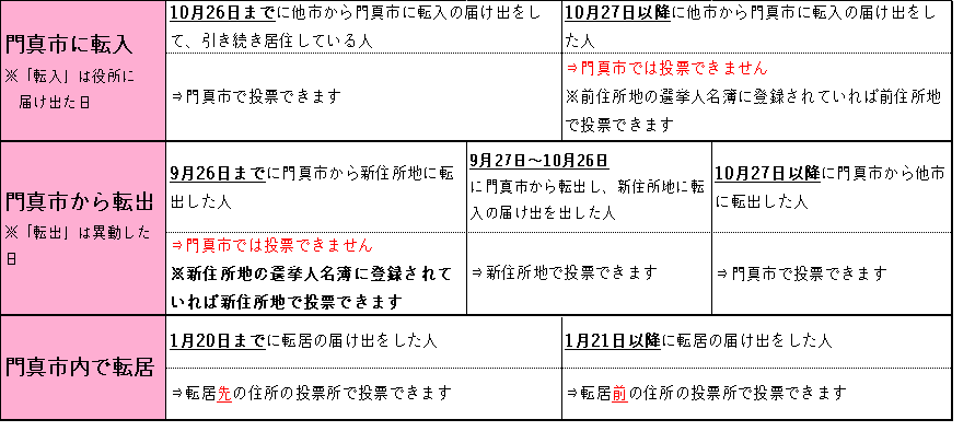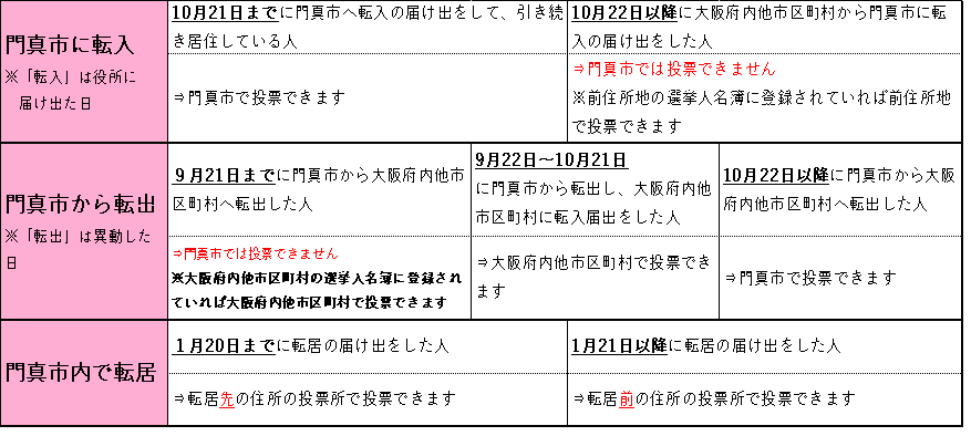 令和7(2025)年10月26日までに 門真市に転入届を提出し、門真 市の選挙人名簿に登録されてい る人 |